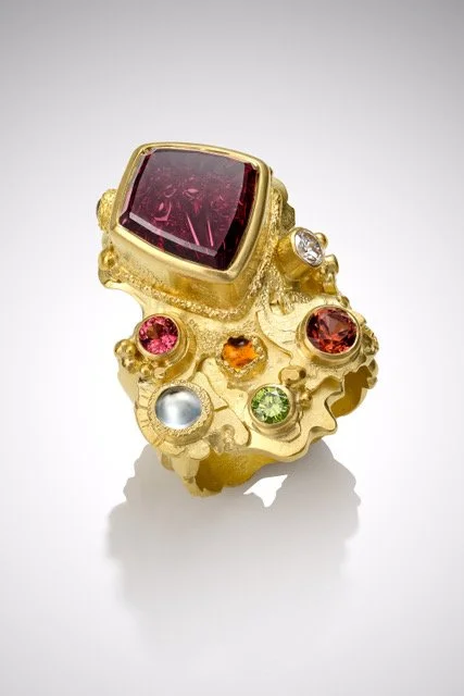 Tracy Johnson bespoke Mother’s ring featuring designer cut center stone by John Dyer.