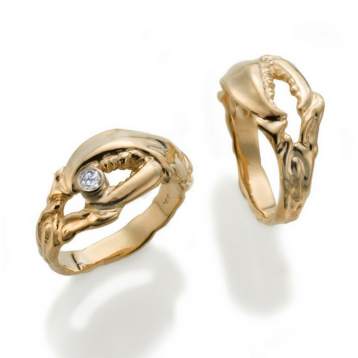 Complete crusher claw collection available in sterling silver or solid 14k gold. Most are in stock with natural diamond or Maine tourmaline accents. Custom pieces welcome.